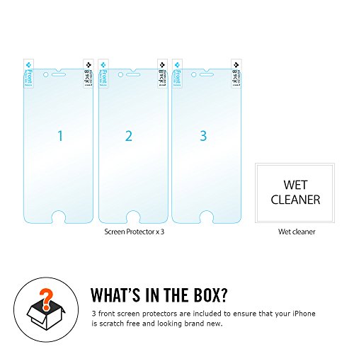 - Feature : 3 Front Screen Protectors made of Premium Japanese PET material / Hard coated for Scratch Resistance (Hardness: 3H) / Dry Application: Easy to install and remove (Bubble-Free / No Residue) / Crystal Clear Screen Protector sized smaller than iPhone 6 front panel / Compatible with Apple iPhone 6 (4.7") Only - 2014