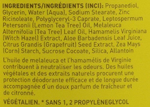 -. Feature : Long-Lasting Protection / Propylene Glycol and Aluminum Free / Tea Tree Oil and Witch Hazel help neutralize odor