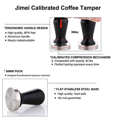 Jimei Calibrated커피Tamper 100?%스테인레스 스틸 베이스Bean Barista에스프레소Tamper압력 키친 툴 악세사리 54mm 블랙