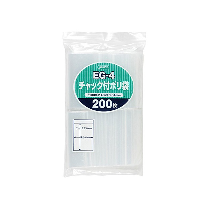원본상품명:ジャパックス チャック付きポリ袋 100×140×0.04mm 200枚入 EG-4