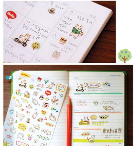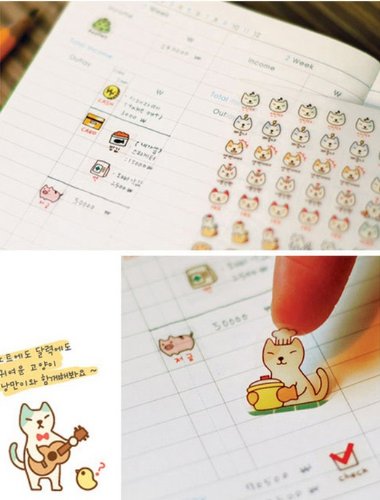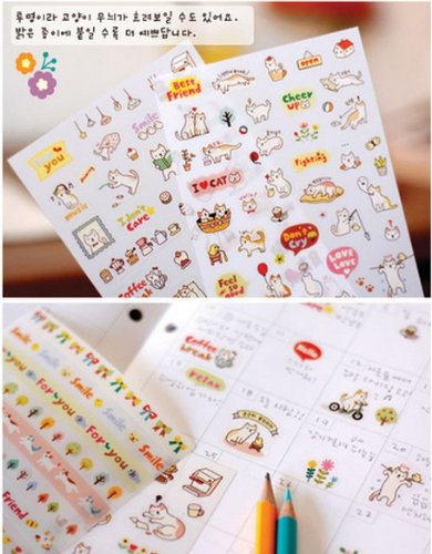1 X ONOR-Tech 6 Sheets Lovely Cat Decorative Adhesive Sticker Tape / Kids Craft Scrapbooking Sticker Set for Diary, Album