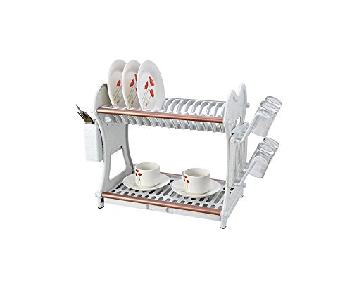 Home N Kitchenware Collection 2 Tier Dish Rack, Made of ABS and Aluminum, Sturdy & Elegant, 22" x 10" x 15.5", White Marble