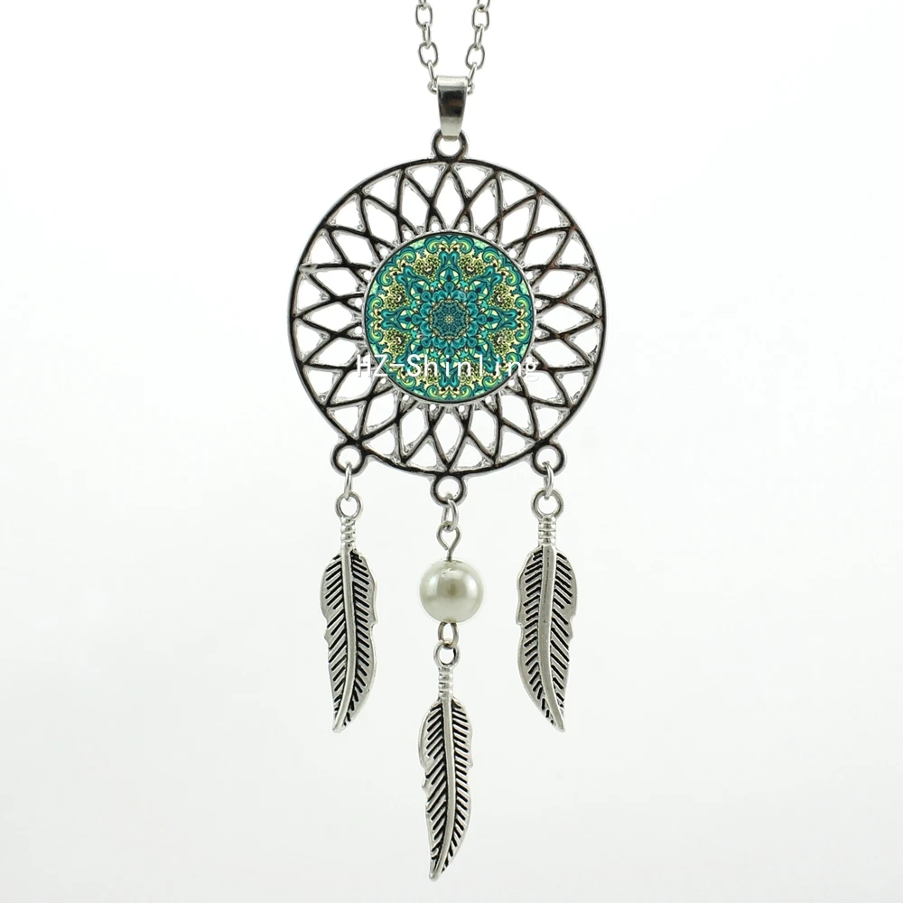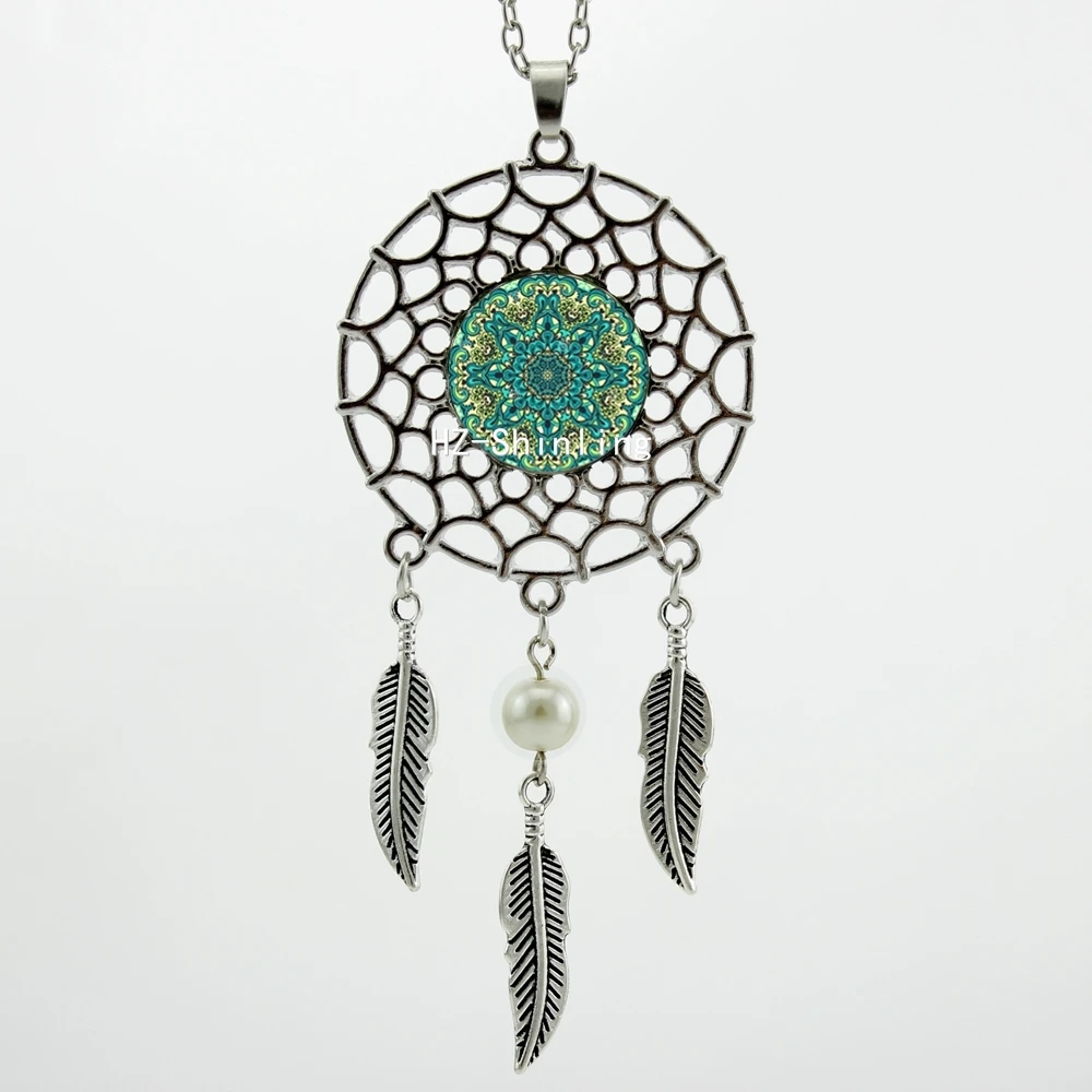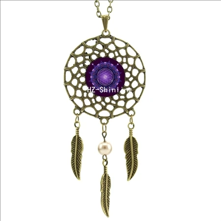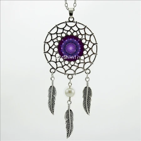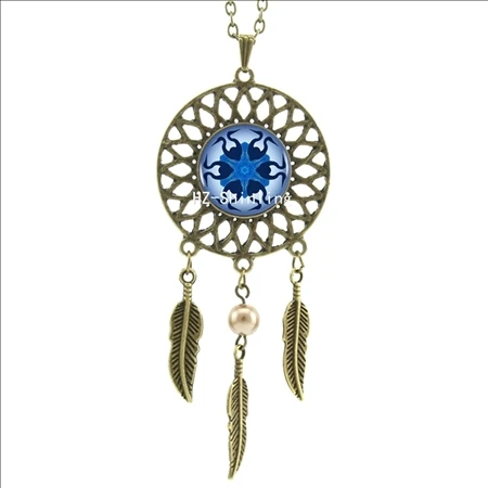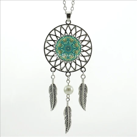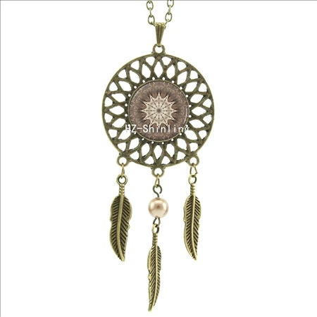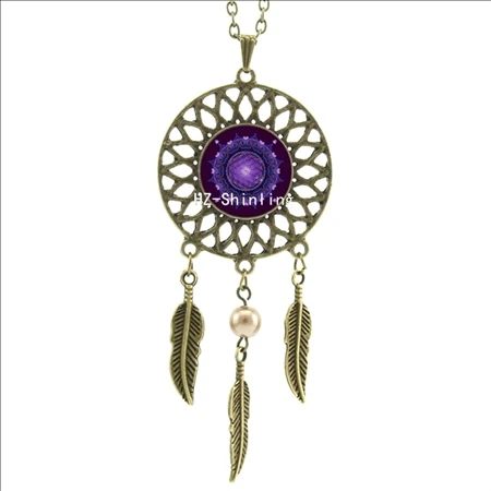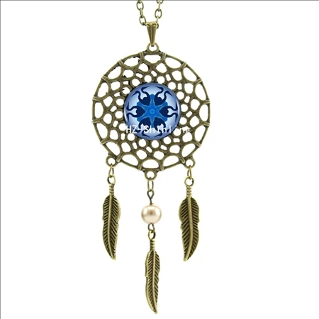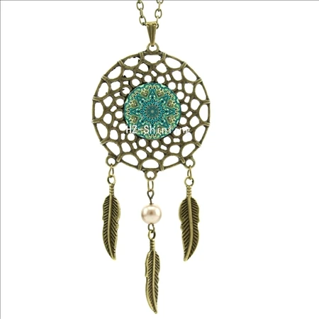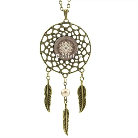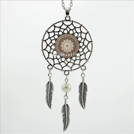 Hot:Handmade Vintage Glass Photo Dreamcatcher Necklace