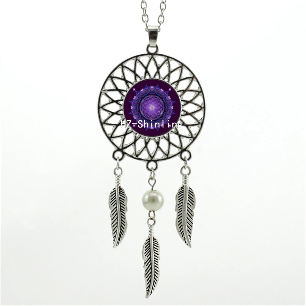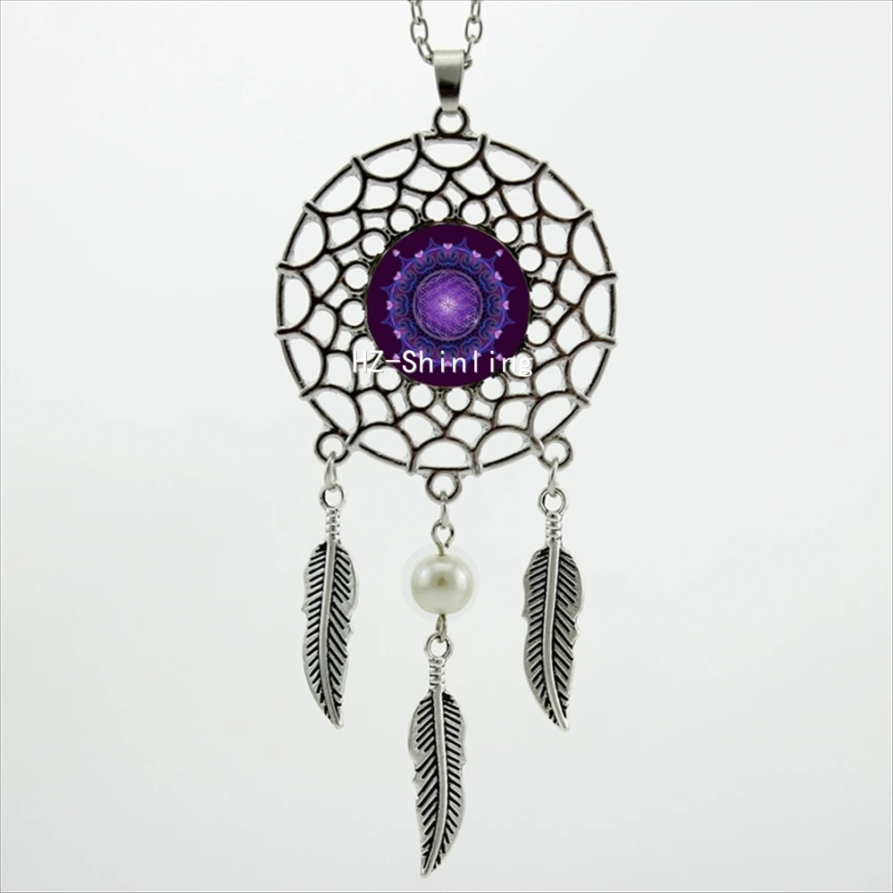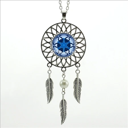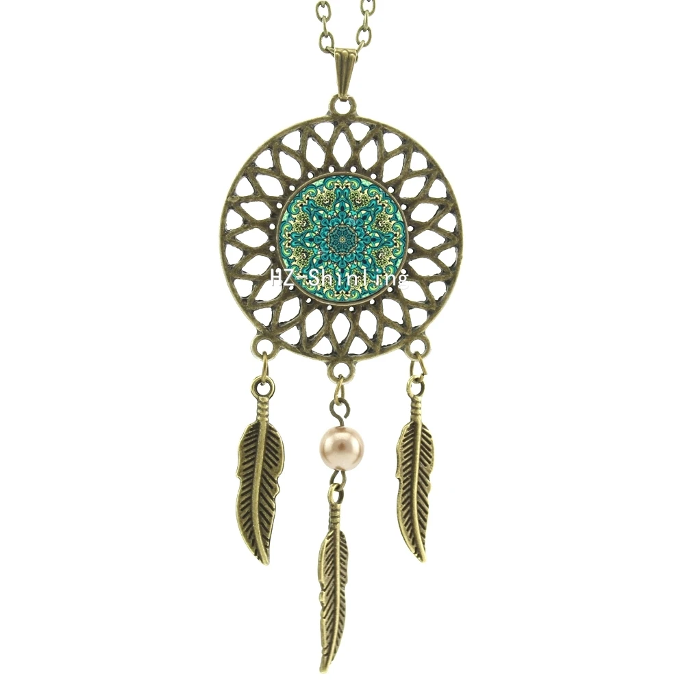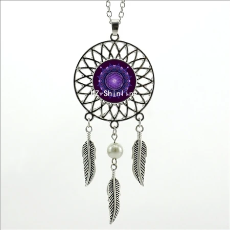 Hot:Handmade Vintage Glass Photo Dreamcatcher Necklace