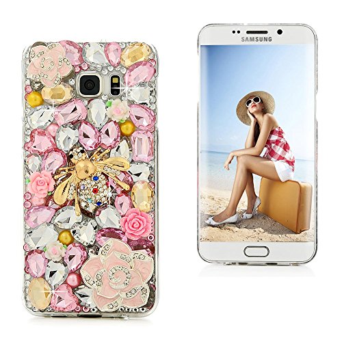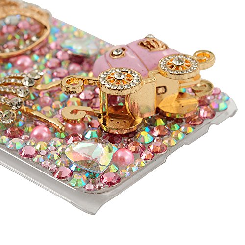 Galaxy S6 Edge Plus Case - Mavis's Diary 3D Handmade Bling Crystal Luxury Cute Pumpkin Car Golden Crown Dancing Girl Shiny Sparkling Pink Diamonds Gems Clear Hard Cover for Samsung Galaxy S6 Edge Plus