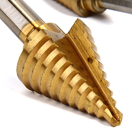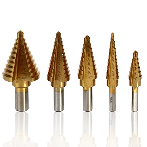 5 Pcs HSS Titanium Coated Step Drill Bits Set SAE Sizes Bits Shank 3/16" 1/4" 3/8"