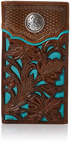 Studio : Ariat Men's Accessories Publisher : Ariat Men's Accessories Binding : Apparel Product Description This Nocona rodeo wallet by medium and f western products is a beautiful floral pierced overlay with blue background, basket weave design, contrast stitching and silver Concho. Inside features multiple compartments for your credit cards, cash, and an id window. 0