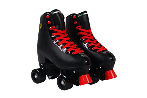 Studio : Dakott LLC Publisher : Dakott LLC Binding : Sports Product Description Ferrari amazing classic roller skates classic skates with leather-look vinyl upper and secure lacing system. Ferrari 58mm high rebound urethane wheels for better shock absorption and durability, precision bearings for smooth rolling. Ferrari unique material used for preparing boots, shoes car seats. 0