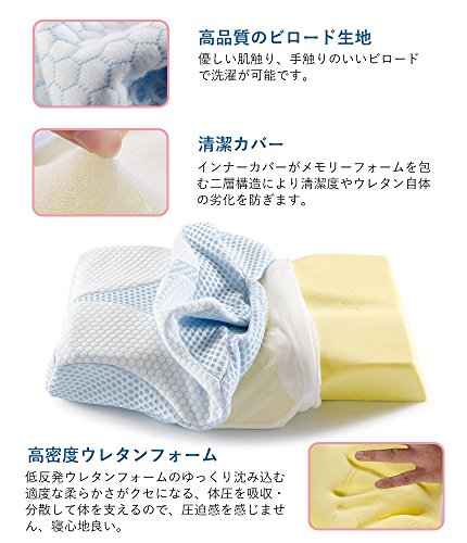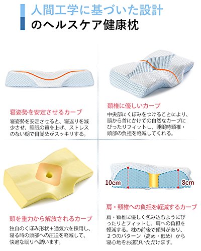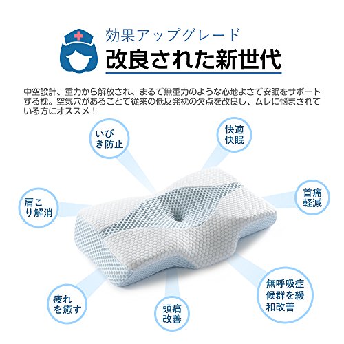 [Improved the new generation, effects upgrade] shape that has been designed for the best sleep is also comfortable good forever. Employs a unique dimple design + ventilation holes, the "ideal sleep" to be released from gravity to your original. Have empty air hole to reduce the urethane foam peculiar sense of stuffiness, it is the best excellent ventilation, even in the summer. [Cervical vertebrae relax, gravity release] have depressed the center, keep fit and stable posture in the head. The cervical spine is supported firmly gently, to reduce the burden on the cervical spine. Foam pillows of new generation, to improve the ordinary concave pillow, innovative hollow design of the pillow body, gravity load on the sleep head, neck, shoulder has been devised so as to be minimum. [Head vacuum, snoring prevention] When sleep in supine, the hollow design + shaped depression, the pressure of the head is reduced, stable posture. Led to the curve of only a natural neck put your head, you can sleep comfortably not block the airway. To improve the snoring. [Osshayoko Rakune, stiff neck measures] to make a depression, reduce the tightness of the side of the head and ears at the time of sleeping sideways. Have to have a thickness on both sides, already it became sideways can also maintain the curve of the neck, gently fit on the shoulder, the shoulder is not being squeezed, you can effectively improve the stiff neck. In [stereoscopic 3D foam sleep pillow] unprecedented special three-dimensional shape, has "super-gravity release," "ultra-high-breathable" "ultra-comfortable stable" These three features support a good night's sleep. Pillow of the improved version that takes into account a variety of body type, there is a slope before and after, you can choose the comfort from the two patterns (Enhanced-low). [Improved the new generation, effects upgrade] shape that has been designed for the best sleep is also comfortable good forever. Employs a unique dimple design + ventilation holes, the "ideal sleep" to be released from gravity to your original. Have empty air hole to reduce the urethane foam peculiar sense of stuffiness, it is the best excellent ventilation, even in the summer.