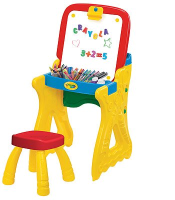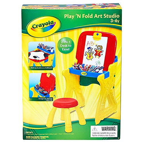 -. Title : Crayola Play 'N Fold 2-in-1 Art Studio Offers Elevated Storage for art Materials, Such as Markers, Chalk, Pens and Paints