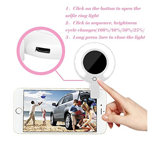 -. Feature : TAKE IT EASY:Ring lights make your eyes have that ethereal glow sought after in many cosmetics advertisements. Or many advertisements, period. It's an easy gimmick to add a little flair to any photograph, and the Kira Clip-On attachment for your phone wants to help you get that effect with your selfies. / 360° ROTATE and MIRROR:The light can rotate 360 degrees. you can choose the best Angle to shoot! The mirror can rotate 360 degrees,too, you can combine the mirror, using rear camera for HD shooting. / COMPACT DESIGN: Mini Size 3.8" * 2.8" * 0.4", The Ring lights can easily be put into pockets and handbags. no additional battery, it is more convenient to carry / RECHARGEABLE:Created by HAYATA, High Quality plastic and shock proof will not heat and low energy consumption, the Kira Ring Light will be powered by lithium batterie,so it won't drain your phone's and save your money! / UNIVERSAL COMPATIBLE: Compatible with all smartphones brands: iPhone 6s / 6s Plus / 6 /6 Plus / 5s / 5c / 5 / 4s / 4, Samsung Galaxy series like Galaxy S6, S6 Edge Plus, Note 5, LG Phones, Moto, Huawei, HTC, Sony and even more. iPad & even MacBook works well too.