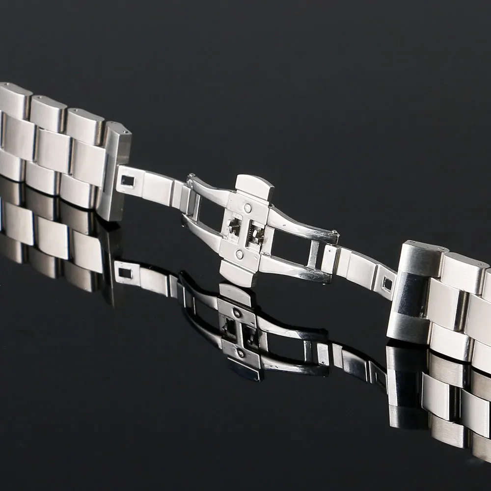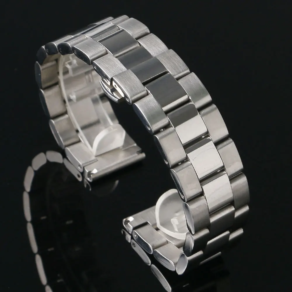 | [해외]20/22/24 미리메터 실버 손목 스테인레스 스틸 금속 링크 스트랩 시계 밴드 스트랩 교체 푸시 botton을 숨겨진 버클 |