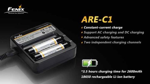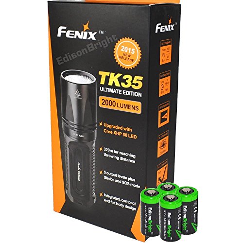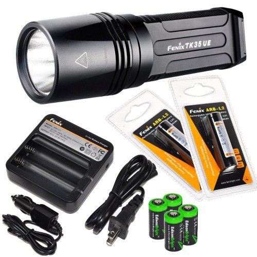 FENIX TK35 UE 2015 version (TK35 Ultimate Edition) 2000 Lumen CREE XHP 50 LED Tactical Flashlight with 2 x Fenix ARB-L2 2600mAh Li-ion rechargeable batteries, 4 X EdisonBright CR123A Lithium batteries, Fenix ARE-C1 18650 batery charger, in-car Charger ada