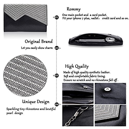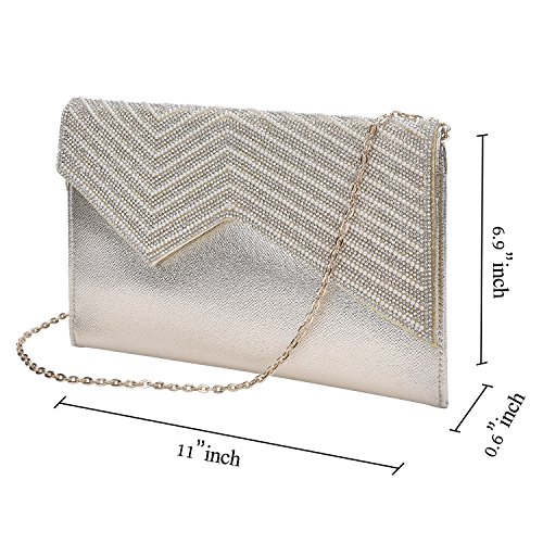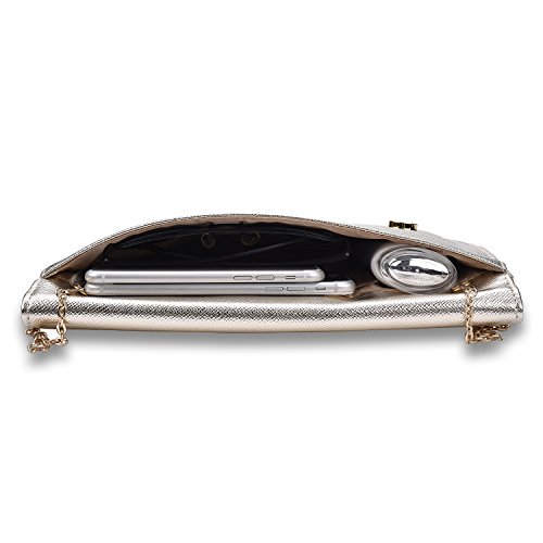Features: 1.Material:High quality synthetic leather? 2.Shape/pattern:As picture shows? 3.Function: clutch, evening bag, cross-body bag, clutch purse and handbags? 4.Color:Black/silver/gold 5.Size: Length:11 , Width: 0.6 , Height:6.9 (inch) , Strap Drop (MAX) :25(inch) Notice: *Little leather smell is normal,Open it and put it in a ventilated place for few days, the smell will disappear.? *The colour as seen in picture may have colour difference because of your screen setting.? *If you have any issues, please feel free to contact us and we will be happy to solve your issue . 0