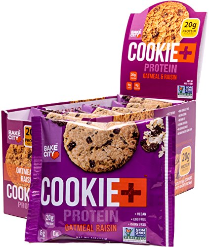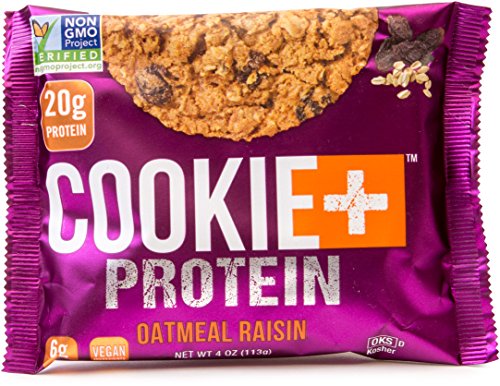 Cookie + Protein Cookies - Oatmeal Raisin, 20g Protein, Non GMO, Vegan, Kosher (12 Pack, 4 Ounce Cookies)