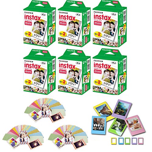 Fujifilm Instax Mini Instant Film 120 Shots with Bonus Photix 5-Color Self-Standing Frame Set & 60 Decorative Skin Stick-on Stickers for Fuji Instax Mini 8, SP-1 and SP-2