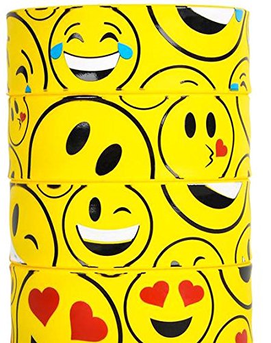 - Feature : Emoji Party Favors for 12 ~ 12 Emoji Slap Bracelets and 33 Emoji Temporary Tattoos - Super Emoticon Fun for Birthday Parties, Great for Prizes, Classroom Fun / Set of 12 Emoji Slap Bracelets (9 inches long) featuring 4 Different Emoji Faces / 33 Original Tattoos Designed by Partymoji Artists, Tattoos are Made in the U.S.A.! / These slap bracelets feature a dynamic display of emoji images. Straighten out the bracelet by pinching the ends, and then place it onto a wrist. It fastens instantaneously with a slapping action. / Your Party Guests will Love these Emoji Party Favors . Popular with any age group.