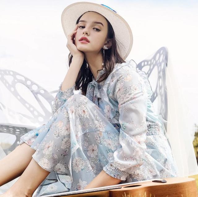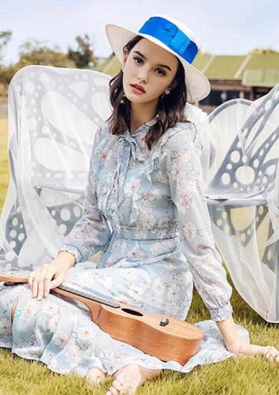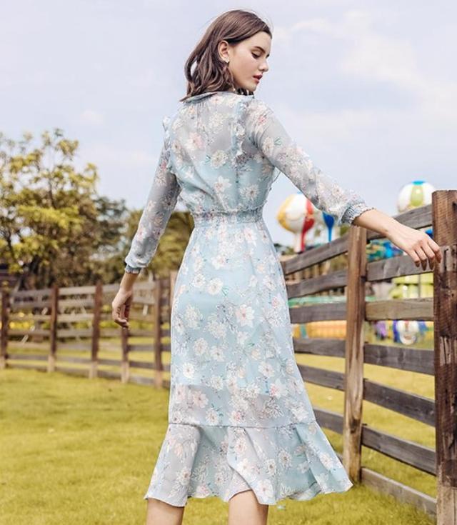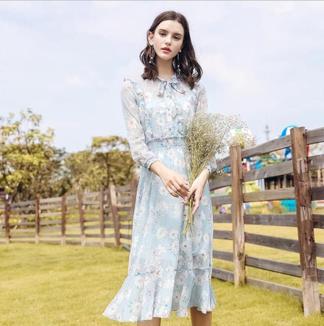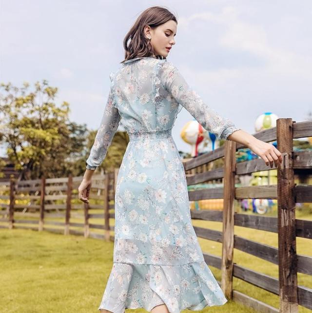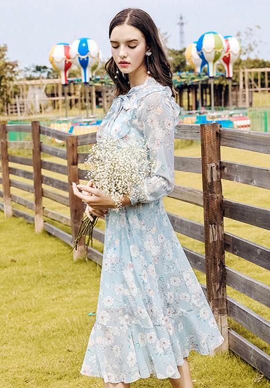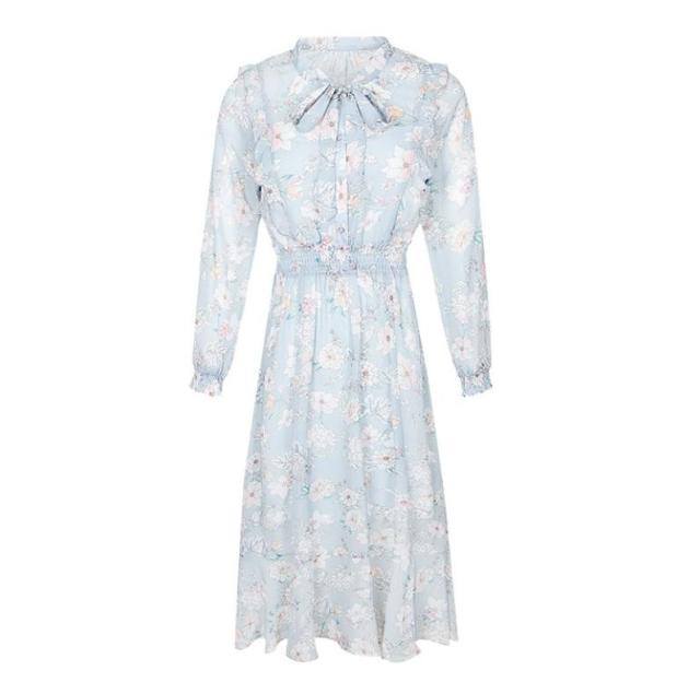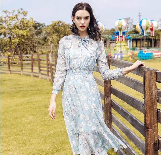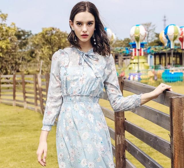 ・キーワード:花柄 プリント 透け感 リボン 大人かわいい お嬢様 ドレス 食事会 2018年秋トレンド ワンピース
