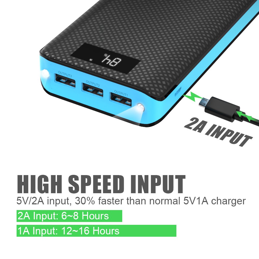 Charging the main body with 2A input fast charging saves up to 20% - 30% charging time compared to other mobile battery 1A input.