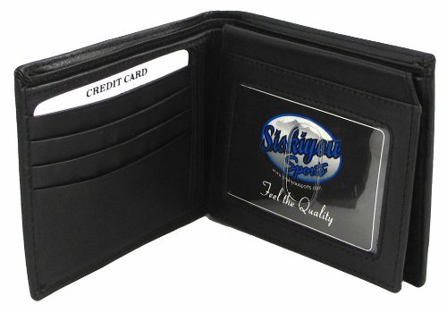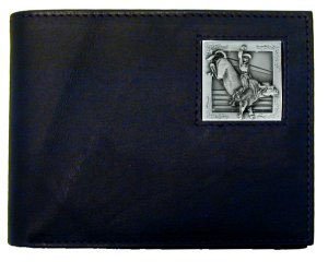 Our bi-fold wallet is made of high quality fine grain leather with a Bull Rider emblem sculpted in pewter in fine detail on the front panel. Includes slots for credit and business cards and clear plastic photo sleeves.Feature