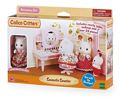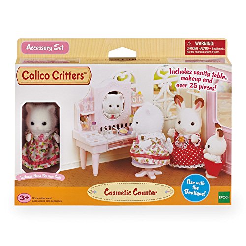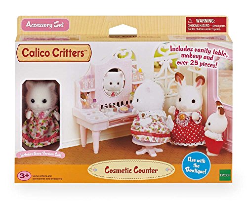 Nora Persian Cat has all the cosmetics she needs to get picture perfect! Calico Critters is a unique and adorable range of distinctive animal characters with charming and beautifully detailed homes, furniture and accessories. They live, work and play in an idyllic and wonderful place called Calico Village. These timeless, classic toys promote wholesome family values. These life-like, award-winning miniatures also inspire imagination and creativity. These adorable toys promote healthy cognitive development through pretend play. Acting out storylines will exercise narrative and critical thinking processes, while fine motor skills and dexterity improve as little ones manipulate the fun environments, critters and accessories. Mix and match with other Calico playsets and critters. (Sold separately).Feature