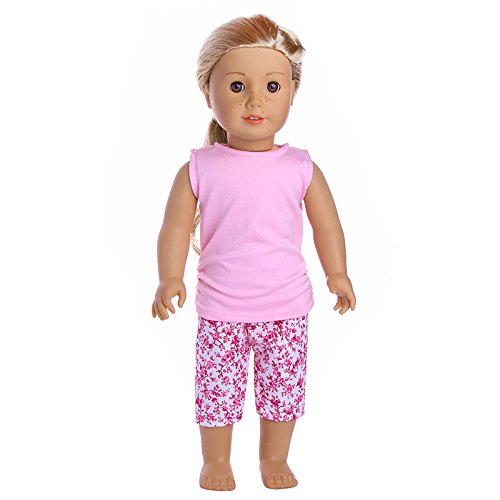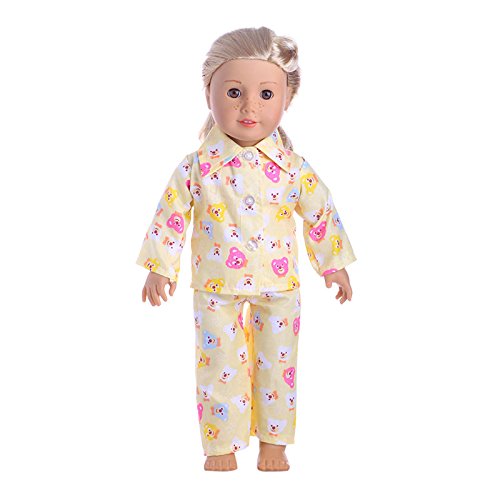 This set includes the following 7 outfits: 1:Strawberry pajamas 2:pink top and flower pant 3: blue flower dress 4:yellow bear pajamas 5:green lovely dress 6:flower dress 7:swim set 8: white shoes