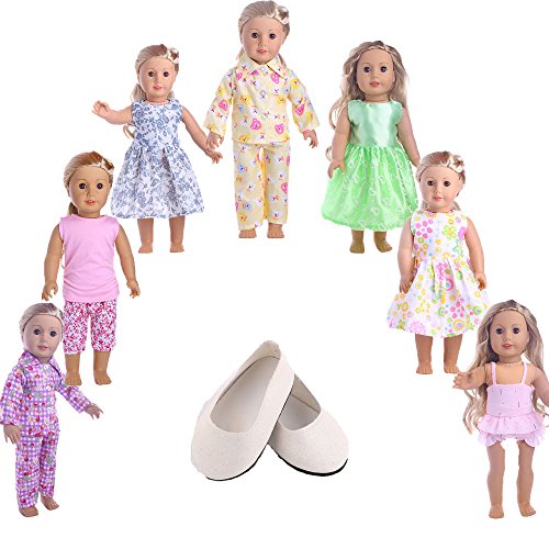★ Package Include Total 7 Sets Doll Clothes:Mix 7 set+one pair shoes