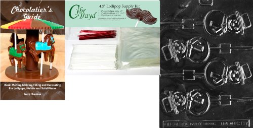 Cybrtrayd Smiling Snowman Lolly Chocolate Mold with Chocolatier's Bundle of 25 Lollipop Sticks, 25 Cello Bags, 25 Red Twist Ties and Chocolatier's Guide