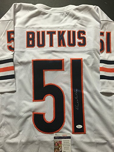 Autographed/Signed Dick Butkus Chicago Bears White Football Jersey JSA COA