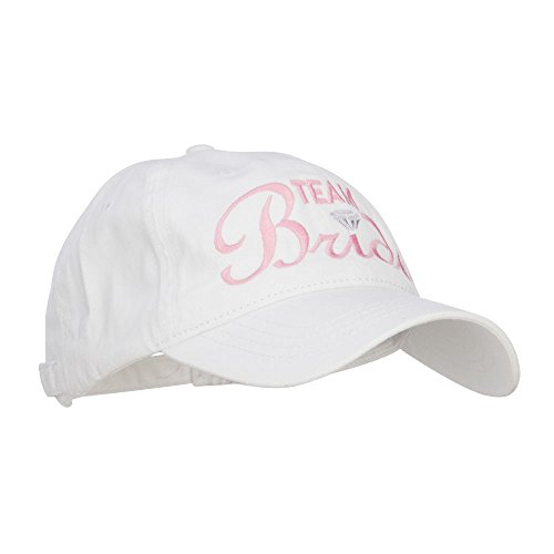 Binding : Apparel Product Description TEAM Bride is embroidered on the front crown. 1 small ventilation hole placed on each panel of crown. Bill is stiff and pre curved, same color under bill. Unconstructed crown. 6 panels. Low profile. Our team bride embroidered cap is great for bridal party to wear for wedding celebration, bridal shower, bachelorette party and other occasions. All Season. 8(W) X 11(L) X 4.5(H) inches. Thick, soft and light material. Available in different colors and styles. 0