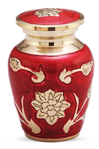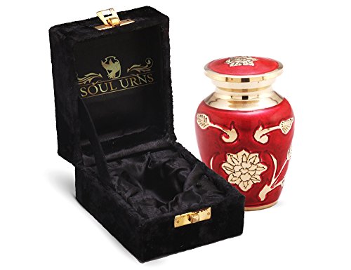 Funeral Keepsake Urn by SoulUrns - Floral Red Keepsake Cremation Urn With Velvet Box for Human Ashes as well as for Pets - NOT Intended for Full Cremation Ash Quantity