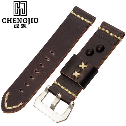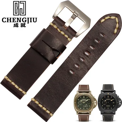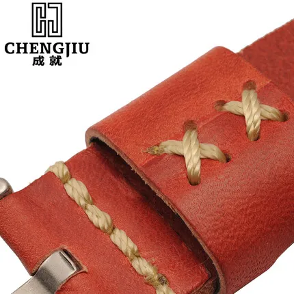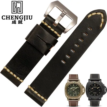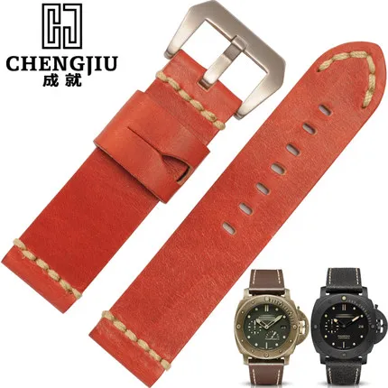 | [해외] 24 미리메터 넓은 블랙 브라운 orange 남성 교체 시계 밴드 파네 팔찌 소 가죽 밴드 남성 montre pulseras |