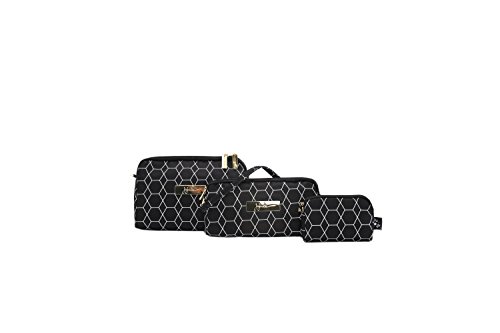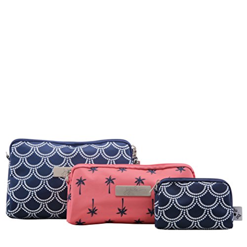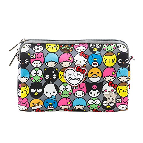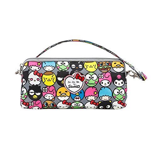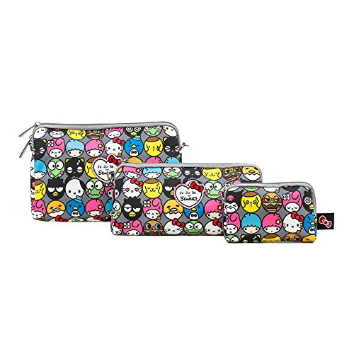 The Ju-Ju-Be Hello Kitty Collection Be Set includes (3) bags for triple the fun, fashion and function. You ready? Then get set to go wild over this newly revamped ensemble of baglets. We just made up that word, but that's what they are 'three super cute little bags of different sizes that give you a head start when you're racing off to the next event. The large bag measures 9-inches by 6.5-inches by 2.5 inches, the medium measures 9-inches by 4.75-inches by 1.75-inches and the small measures 5.5-inches by 3.5-inches by 1-inch. Three sizes help conveniently organize all your stuff - from diaper bag contents to makeup. The inner lining is protected with an Agrion natural antimicrobial treatment that inhibits and reduces the growth of odor-causing bacteria, mold and mildew. The outer fabric is treated with Teflon fabric protector, making it easy to repel stains and keep the Be Set bags clean. The lining is light colored so you can easily see your belongings, and all hardware is metal. Locking slider zippers keep things out of reach from curious toddlers, too (lock not included). The Set comes with (2) straps - an extender strap to convert a bag into a mini shoulder purse and a clip on strap for use as a wristlet or to attach to another bag or stroller. Machine wash and air dry. Say Hello to a print so cute, you'll want to buy a bag for all your friends. With its mix of fun Sanrio friends, these whimsical expressions are sure to make you smile. The print is accented by silver, metal hardware. All Ju-Ju-Be items come with a Lifetime Limited Warranty against manufacturing defects when purchased from an Authorized Ju-Ju-Be Dealer. Authorized Dealers can be found in the images.Feature