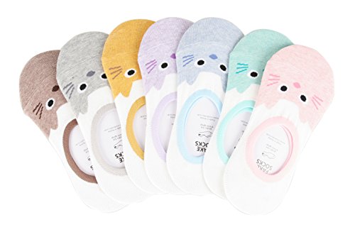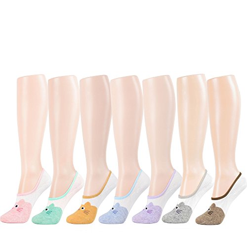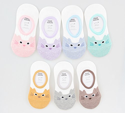 - Title : Women's No-show Casual Liner Socks "Non-slip Heel Grip" (One Size : Regular, 7Pair- Cats)