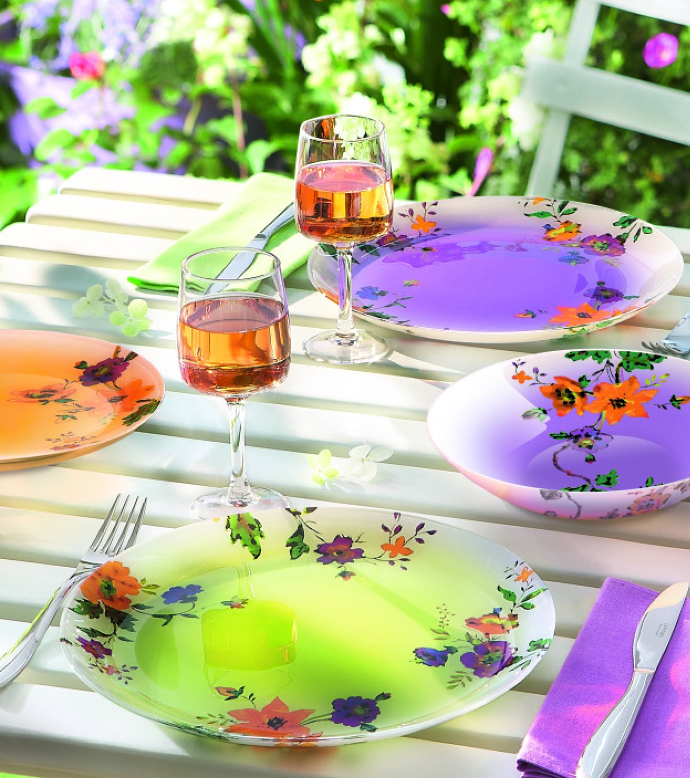 A glassware dish that is made of French made cracks with a colorful floral design that vividly directs the table.