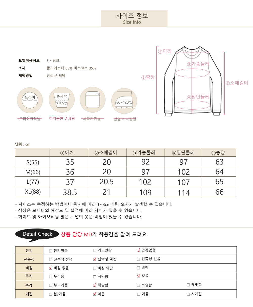 S(55) / M(66) / L(77) / XL(88) 총 네가지 사이즈로