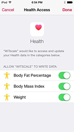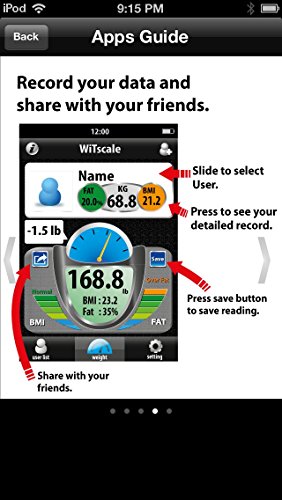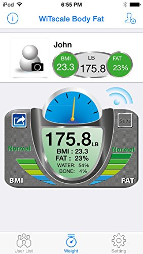 World first powered by Bluetooth Smart Body Fat scale, featuring easy to use free app to track your weight loss, lightweight with stainless steel finished and seamless exporting user data from WiTscale to Apple HealthKit;Impressive 3.5 inches backlit LCD display with Step-On technology and automatic turns off. Runs on 3 AAA batteries (batteries included);Instantaneous body weight, Body Mass Index and Body Fat in % supported on iPhone6 (iOS8.0 compatbile), iPad Air 2, Galaxy S5/Note4 with Bluetooth 4.0 supported with no WiFi network required. Multiple devices and multiple profiles with a single scale is supported;Easy to record and track your present or past weight, BMI(Body Mass Index) and Body Fat in % in a single graph. Share your goals and achievement with your kids and family. Measure units are available in kg, st and lb;Auto Calibrated with 4 Highly Accurate Sensors - measurement up to 330 lbs or 150kgs. One year warranty and 24x7 customer support