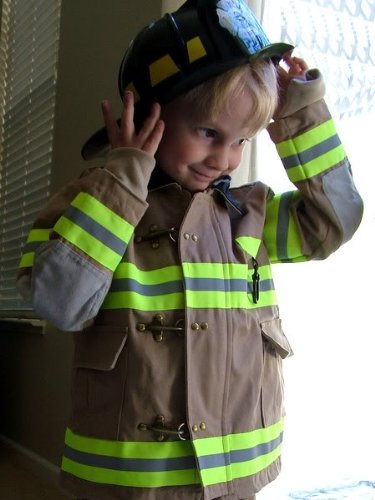 -. Binding : Toy -. Brand : Teetot & Co. Inc. -. Color : Tan -. Department : unisex-child -. EAN : 0799288135848 -. Edition : childrens -. Feature : Tan Firefighter Jacket: Amazing realistic details with three metal clasps & D-ring hardware covering the zipper closure, 2 deep pockets with flaps, thick safety reflective banding, contrasting leather-look collar, elbow patches. / Tan Bib Overalls: 2 pockets with flaps, adjustable red elastic suspenders, knee patches, thick safety reflective banding around pant legs. / Black hard hat plastic helmet with adjustable headband and a hook & D-ring to securely hang off jacket. / Hand-washable 95% Cotton 5% Rayon fabrics. Generously sized. / Your child can role-play firefighter all year round! Adventure Factory by Teetot & Co. Inc. -. Model : 981141 -. PackageQuantity : 3 -. ProductGroup : Toy -. ProductTypeName : TOYS_AND_GAMES -. Size : Small 3-4 Medium 5-6 -. Title : Amazing Fireman/Firefighter Kids Halloween Costume by Teetot Co. Child Size 3-4