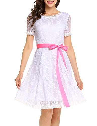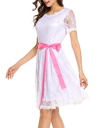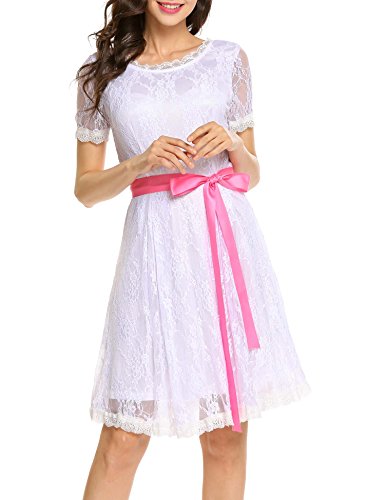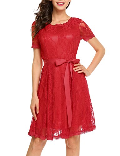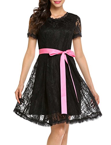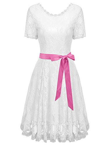 Short sleeve fit and flare floral lace swing dress with separable waist blet, create your stuning curves