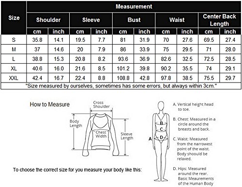 XXL: Bust 42.8"--Waist 38.5"--Shoulder 16.7"--Total Length 29.7"