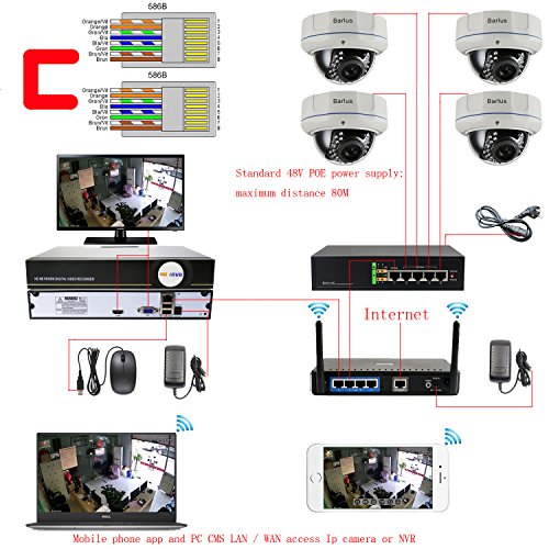 -. Feature : Home, store, office monitoring.built-In microphone can collect high-fidelity sound.Ethernet poe power supply, transmission of images, transmission of sound / POE: Power Over Ethernet Makes Easier Wiring and Installation, Advanced PoE Technology Enables You to Use a Single Network Cable for Both Video and Power Transmission Therefore, a PoE IP Camera Makes the Wiring Simplified and Installation Easier. / Vandal Proof: Aluminum Casing.this security camera with good quality, and it can still work good after hitting. his dome camera can be used intdoor. 30 IR LEDs Night Vision up to 25m.1080P Video at 25fps. / This IP camera support multi-languauge.P2P function,no professional staff. Quickly through P2P penetration technology Easy steps to achieve PC / iOS / Android LAN and remote viewing.You Can Check Home and Business Security Anytime Anywhere / Support onvif international standard protocol,Perfect support for BARLUS NVR, easy docking other manufacturers nvr and software.Stay in Touch with Intelligent Motion Alerts, Email Alerts/Snapshots as well as Mobile