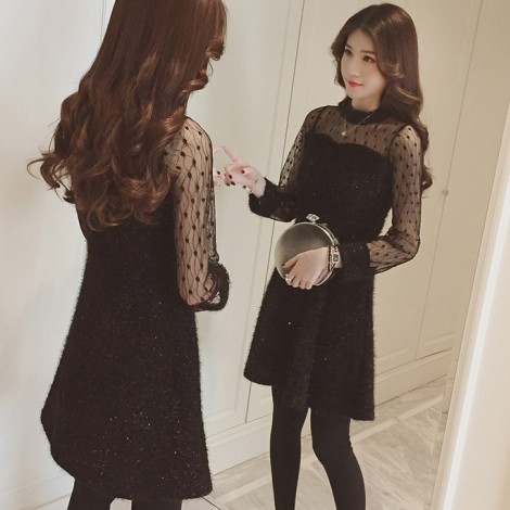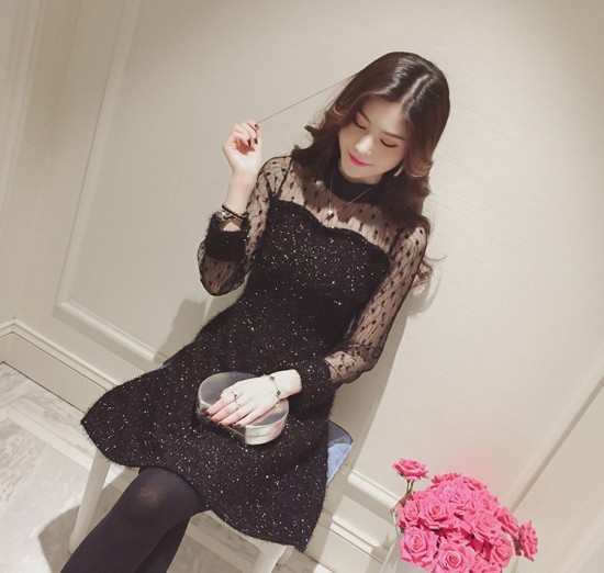 ドレス ワンピース 膝上丈 シースルー シック 華やか パーティー 二次会 drgz1510