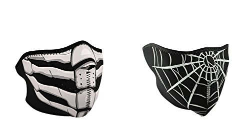 -. Feature : This Product is a 'Bundle' of 2 Neoprene Face Masks identified as a 'Bones Breath' and a 'Spider Web' / The First Facemask is the ZanHeadgear 'Bones Breath', Glow in the Dark, Half Face Neoprene Face Mask / The Second Facemask is the ZanHeadgear 'Spider Web' Half Face Neoprene Face Mask / These Face Masks / Ski Mask are made of Durable, Naturally Warm & Water Resistant Neoprene Face Mask Material / The Mask Sizes are adjustable, by up to 2 inches, using the Hook & Loop closure, located at the back of the head