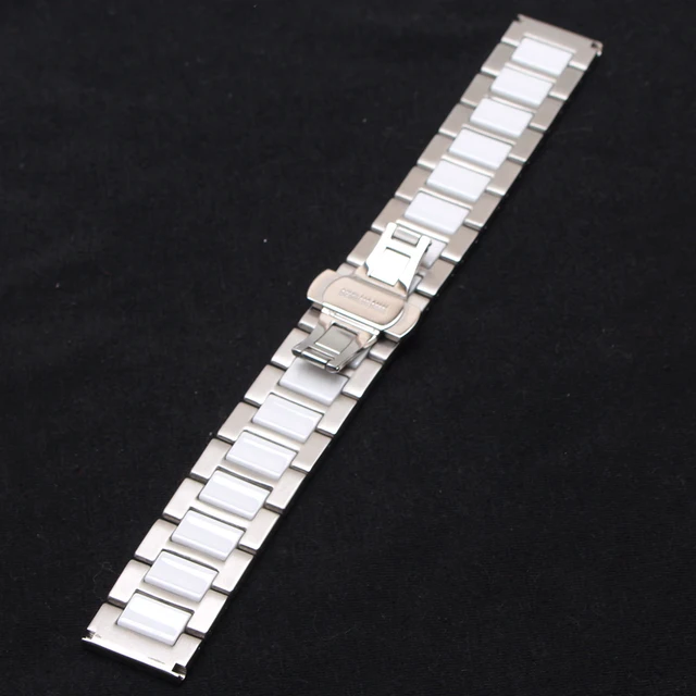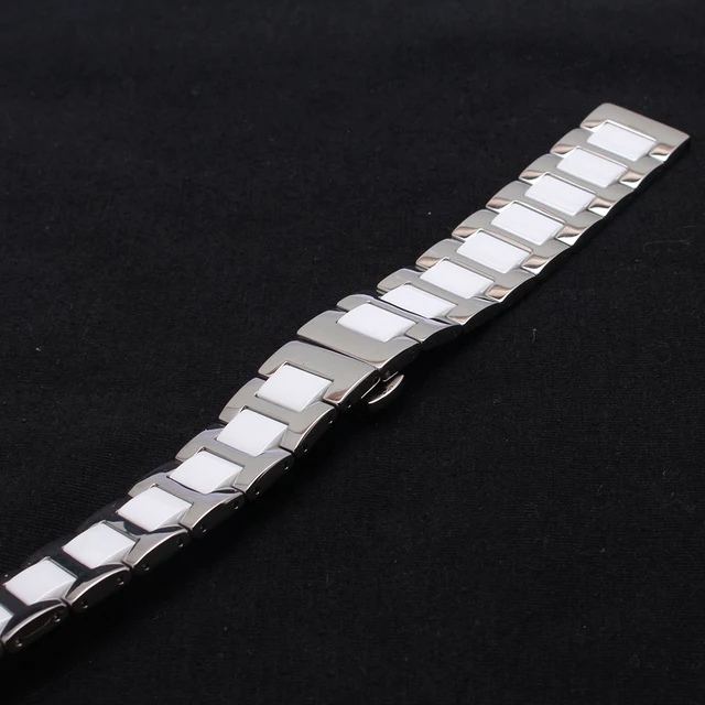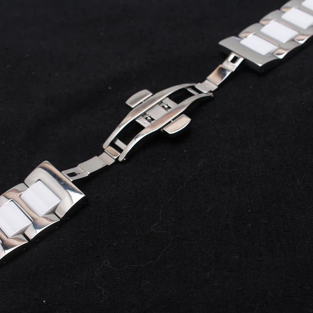 | [해외]세라믹 시계 스트랩 팔찌 시계 줄 14 16 18 20 22 미리메터 손목 밴드 화이트 실버 금속 butterfly 버클 액세서리 |