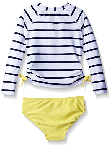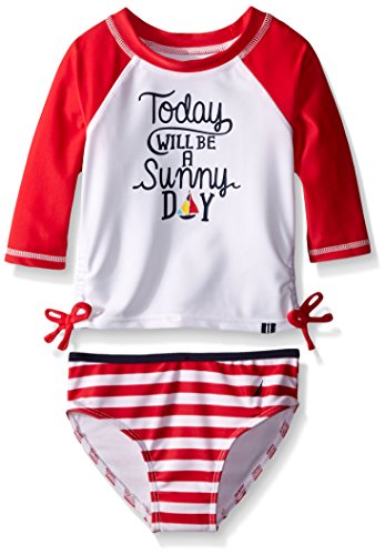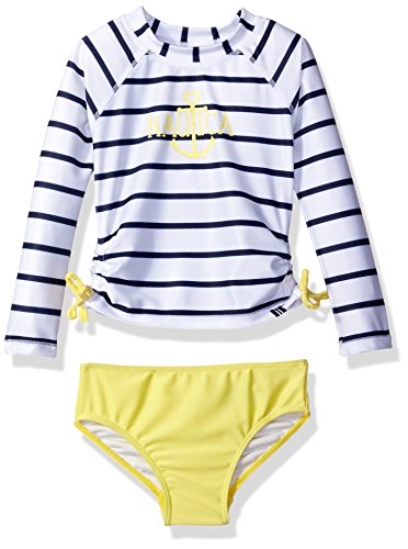 Nautica long sleeve rash guard set with stripe top and solid bikini bottoms.