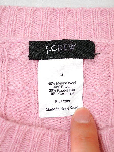 Ladies ブランドJCREW ジェイクルー カラー薄ピンク メール便不可 コンディション★★★ 素材メリノウール・レーヨン・アンゴラ・カシミア 表記サイズS スタッフコメント胸にうっすら小さなシミが有ります。 実寸サイズ 着丈 51 cm 身幅 45 cm 肩幅 35 cm 袖丈 60 cm ※ウエスト・ヒップ以外は平置き採寸【code】#c
