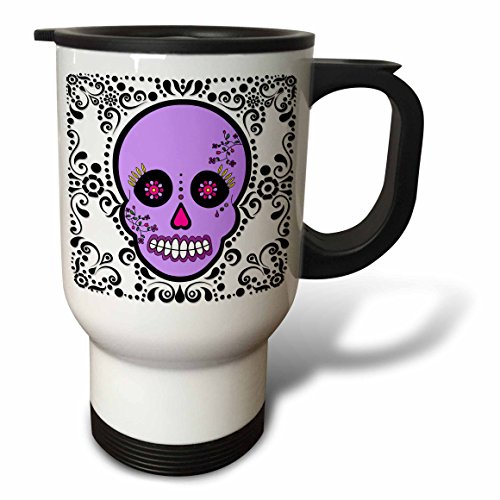 3dRose Day of The Dead Skull, Dia De Los Muertos, Purple, Stainless Steel Travel Mug, 14-Oz