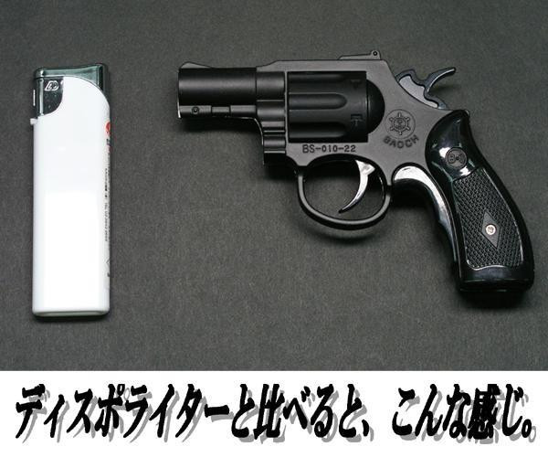 | ハンマーを引くと着火する少し小さなリボルバー型ターボライターです。1つずつピッタリの箱に入れてのお届けになります。テスト用のガスを充填しておりますが、ガスが無くなりましたら、市販のライター用ガスボンベをお買い求めいただき、注入してご使用下さい。 |