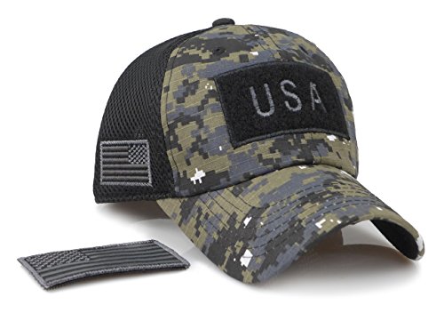 Product Description This versatile hat is essential for showing your support to law enforcement. The vivid embroidered USA flag on side complements the bold camouflage of the hat. The four velcro strips allow for further customization with all of the other pieces of pride you will display. 0