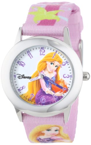 -. Binding : Watch -. Brand : Disney -. Department : girls -. EAN : 0843231069640 -. Feature : Round Time Teacher Stainless Steel Watch with Disney's Rapunzel character on dial. / Meets or exceeds all US Govt requirements and regulations for Children's watches. / Recommended for Ages 3-7 years old. Includes a Time Teacher Punch Out clock for Parents to Teach their Children. / Accurate Japanese Quartz movement, scratch resistant mineral crystal, elastic nylon strap / Water Resistant to 99 feet: withstands rain and splashes of water, but not showering or submersion. / 1 Year Limited Manufacturers Warranty -. Label : Disney -. Manufacturer : Disney -. Model : W000862 -. MPN : W000862 -. PartNumber : W000862 -. ProductGroup : Watch -. ProductTypeName : WATCH -. Publisher : Disney -. ReleaseDate : 2013-07-08 -. Studio : Disney -. Title : Disney Kids' W000862 "Rapunzel Time Teacher" Stainless Steel Watch with Printed Band -. UPC : 843231069640